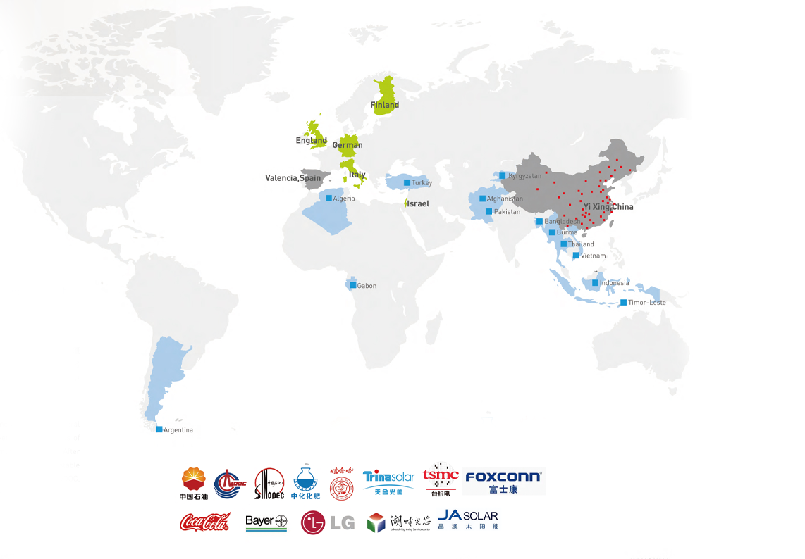 江華集團(tuán)業(yè)務(wù)涉及石油化工、重工業(yè)、冶金礦業(yè)、電力、制藥、新能源等各行業(yè),業(yè)務(wù)遍及全國(guó)各大城市,并已承接了20多個(gè)海外環(huán)保治理項(xiàng)目,遍及孟加拉、土耳其、俄羅斯緬甸等國(guó),同時(shí)開(kāi)發(fā)了越南、印度、泰國(guó)、斯里蘭卡等國(guó)際環(huán)保市場(chǎng),長(zhǎng)期與美國(guó)、法國(guó)芬蘭、瑞典、德國(guó)、日本、韓國(guó)、以色列等國(guó)外知名環(huán)保公司保持緊密合作關(guān)系。